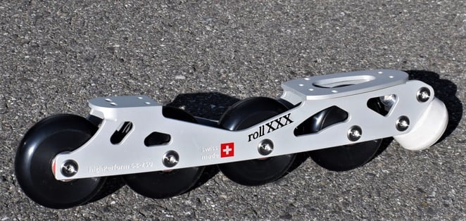 Der roll XXX -Frame kann problemlos auf die meisten Qualitäts-Schlittschuhe vom Fachgeschäft montiert werden.