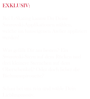 Eine der Spezialitäten von L-Skating sind die neuen Swarovski-Applikationen, welche exklusiv für uns hergestellt werden.